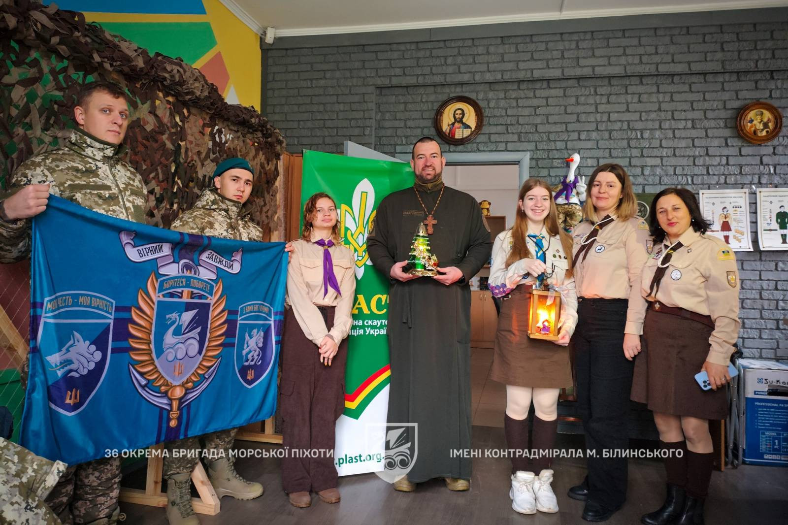 Морпіхам 36 бригади передали Віфлеємський вогонь миру від миколаївського осередку організації «Пласт»