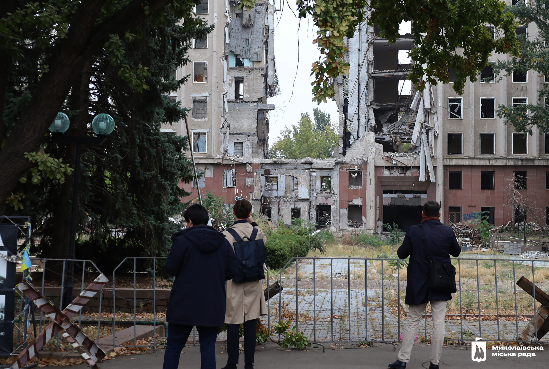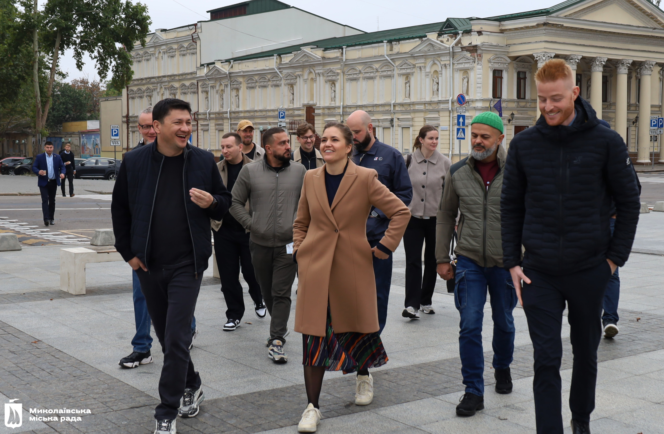 Начальник Миколаївської ОВА Віталій Кім, заступник міського голови Сергій Коренєв разом з головою офісу посольства Данії в Миколаєві Якобом Хансеном ознайомили іноземних партнерів з історією міста, провівши пішу екскурсію центром.