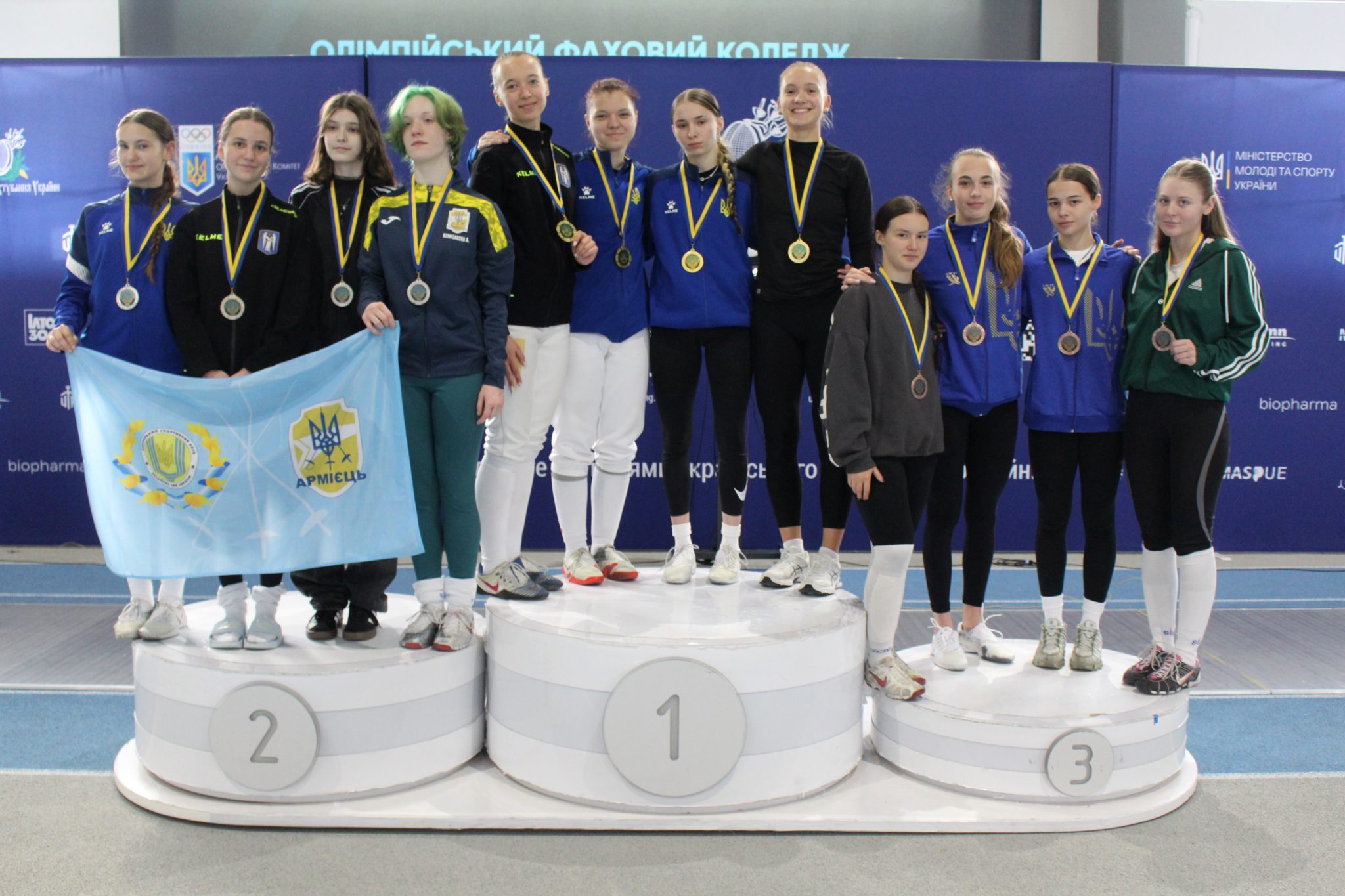 2 місце - Миколаїв-1 (Дар’я Гусаренко, Кіра Пронь, Мілана Степовик, Поліна Чуприна), рапіра;