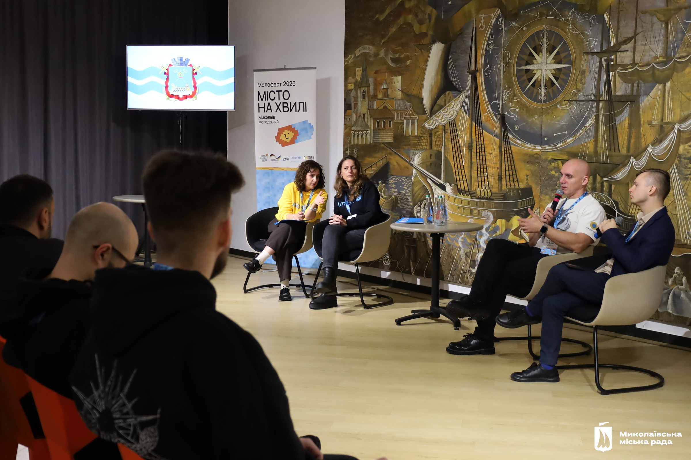 - панельні дискусії: «Молодь і майбутнє Миколаєва: які зміни вже відбуваються і як долучитися», «Молодь і громади: лідерство у час відбудови», «Партнерство заради молоді: як міжнародні організації допомагають створювати можливості