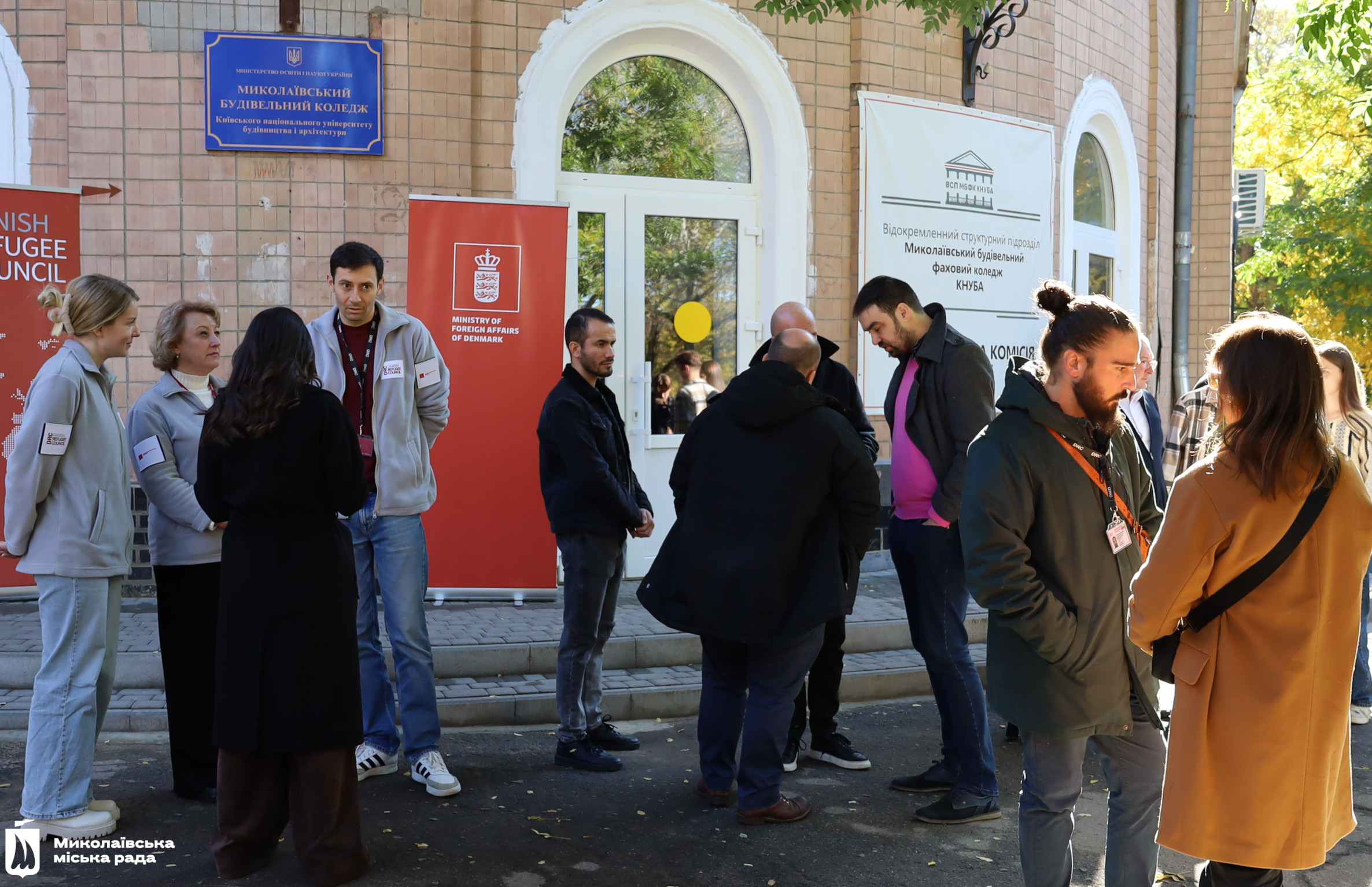 На відкриття навчального закладу завітали всі, завдяки кому стала можливою ця подія: Миколаївський міський голова Олександр Сєнкевич, начальник Миколаївської ОВА Віталій Кім, керівник Офісу посольства Данії у Миколаєві Якоб Хансен, заступник міського голови Сергій Коренєв, команда DRC в Україні на чолі з директором Юліаном Закрзевські, команди NRC та Solidarity, директор коледжу Георгій Бондаренко, ректор Київського національного університету будівництва і архітектури Олексій Дніпров, головний архітектор Миколаєва Євген Поляков.
