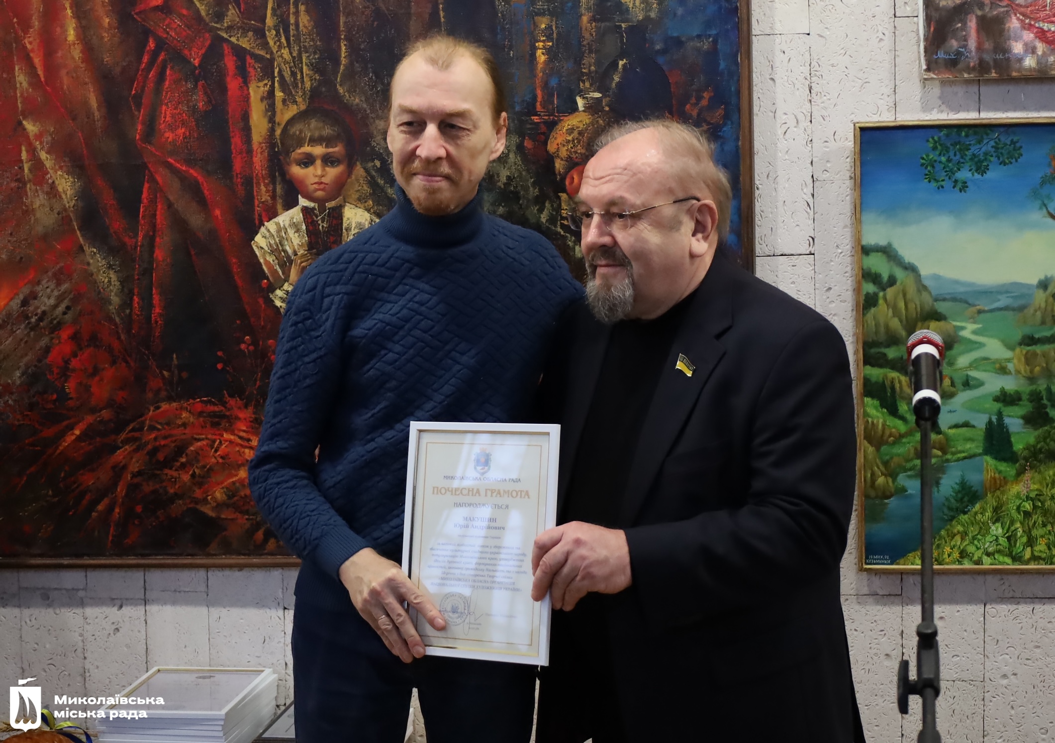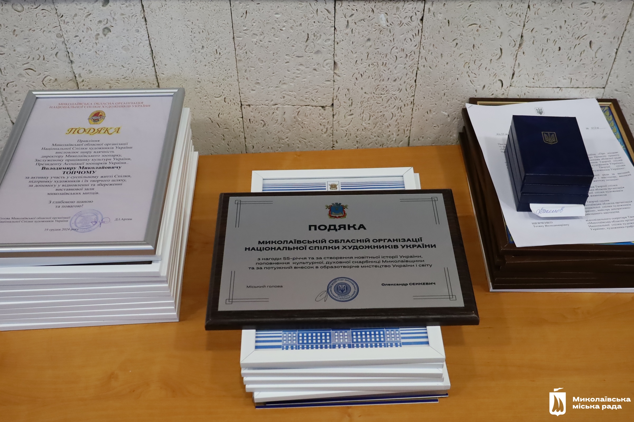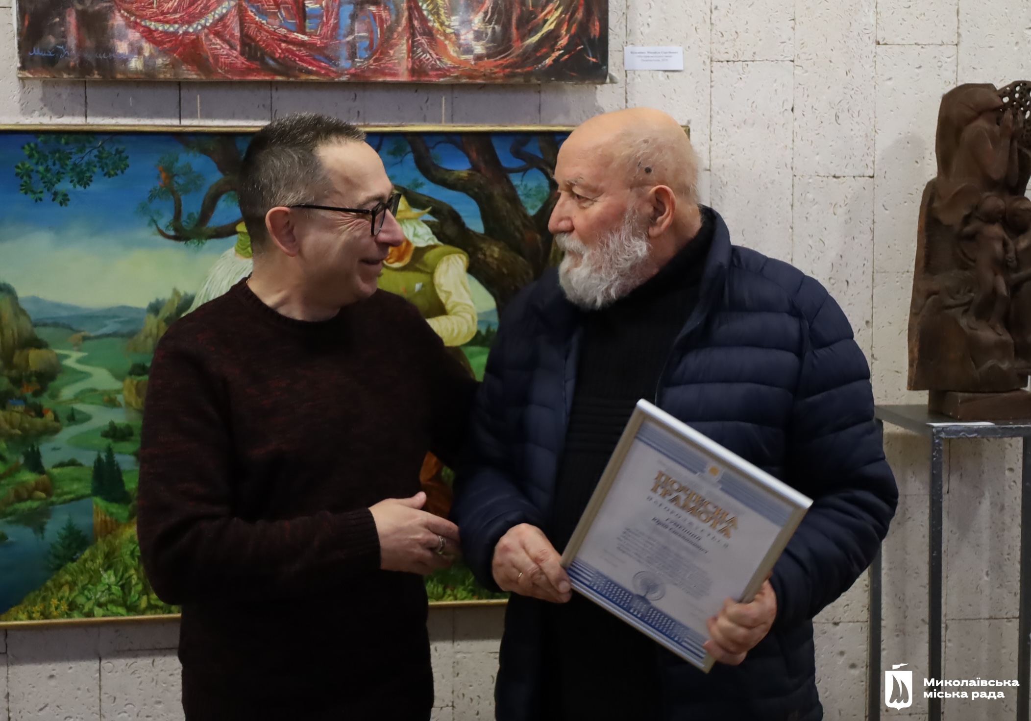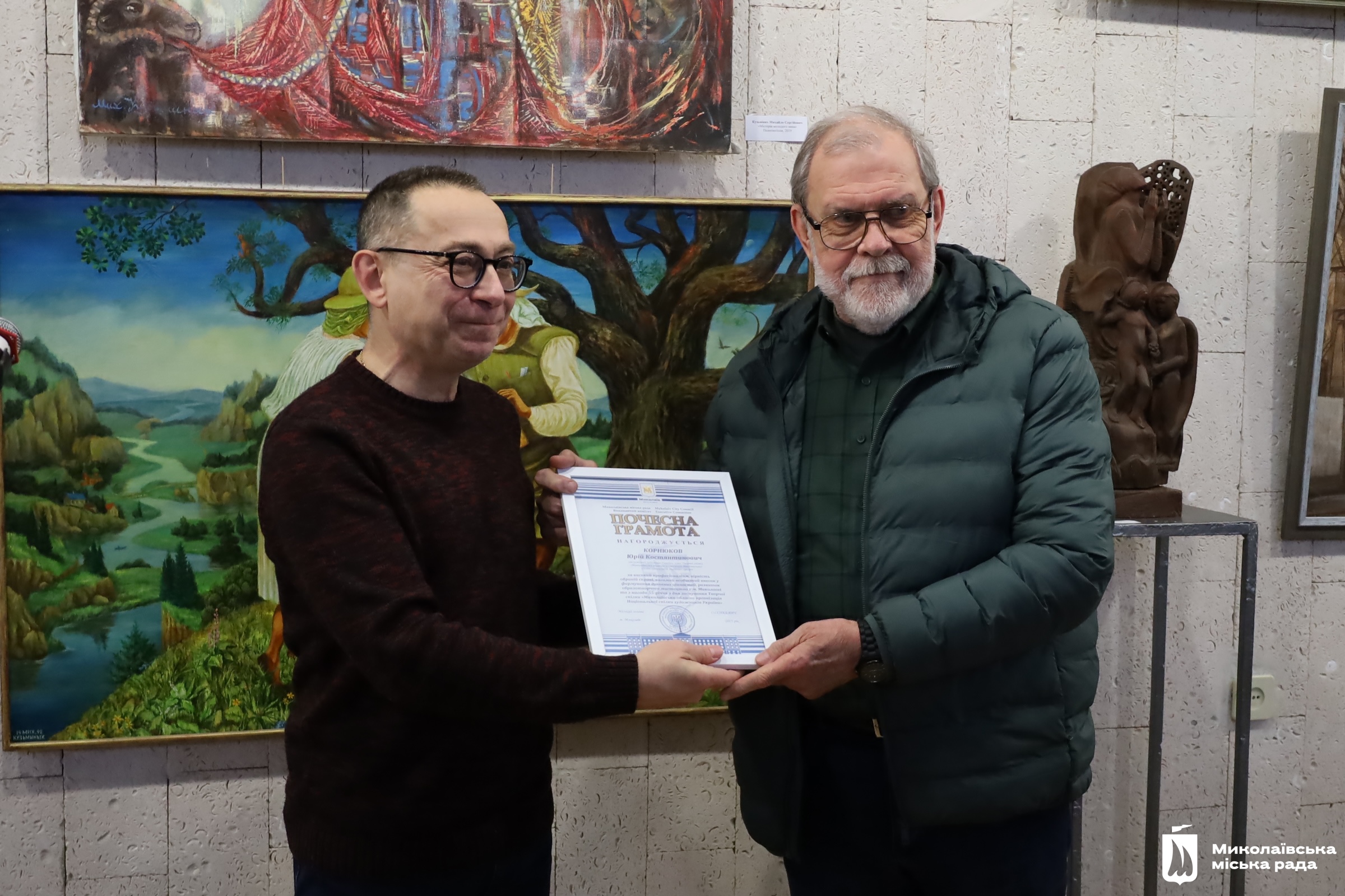 Він передав Миколаївській обласній організації Національної Спілки художників України почесну подяку міського голови за створення новітньої історії України, поповнення духовної скарбниці Миколаївщини та потужний внесок в образотворче мистецтво України і світу. Також грамоти та подячні листи отримали митці нашого міста та області.