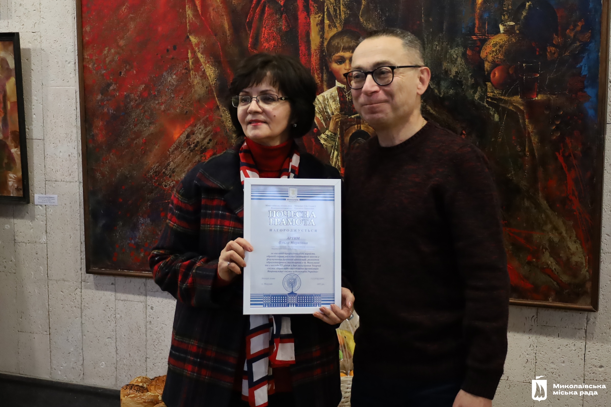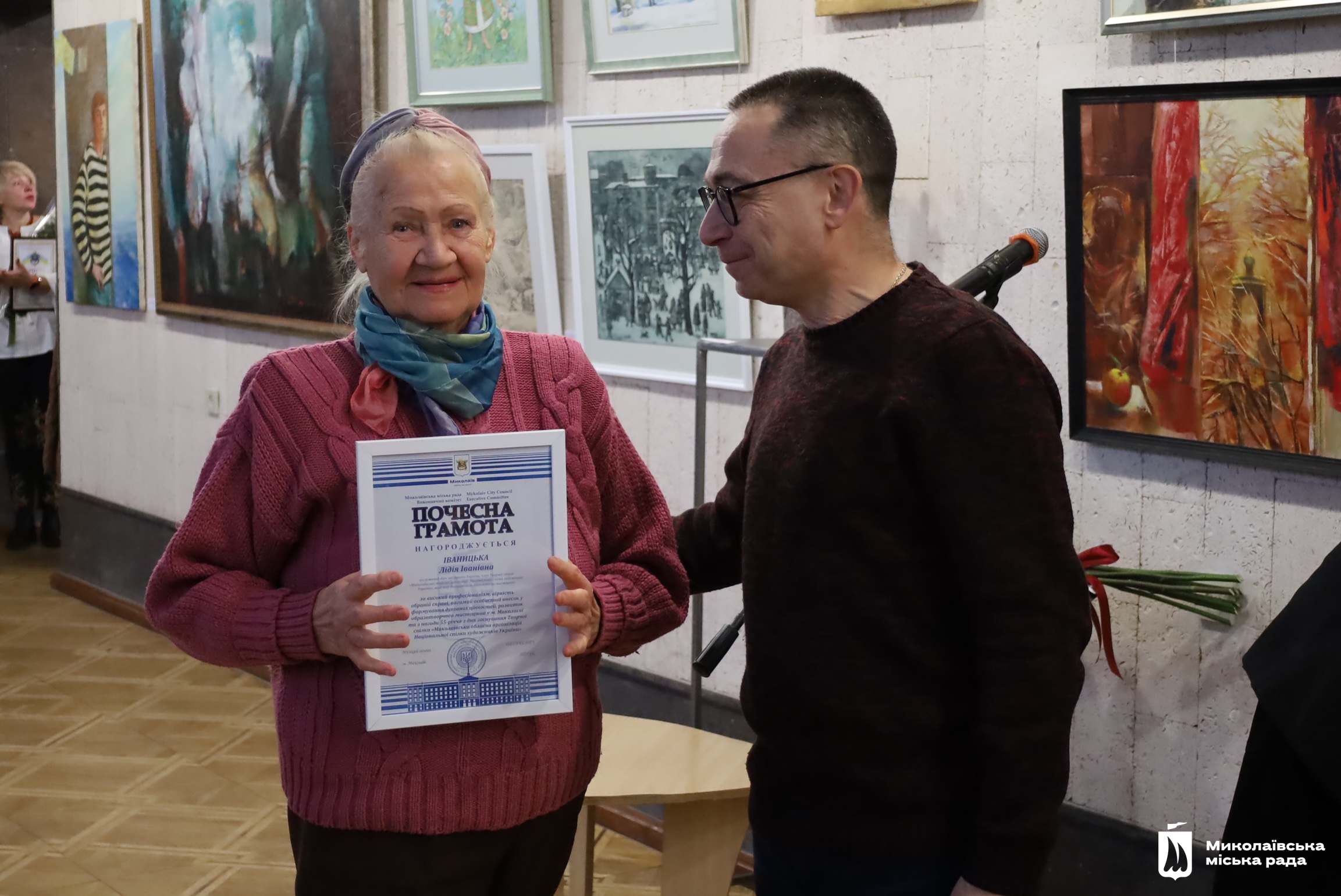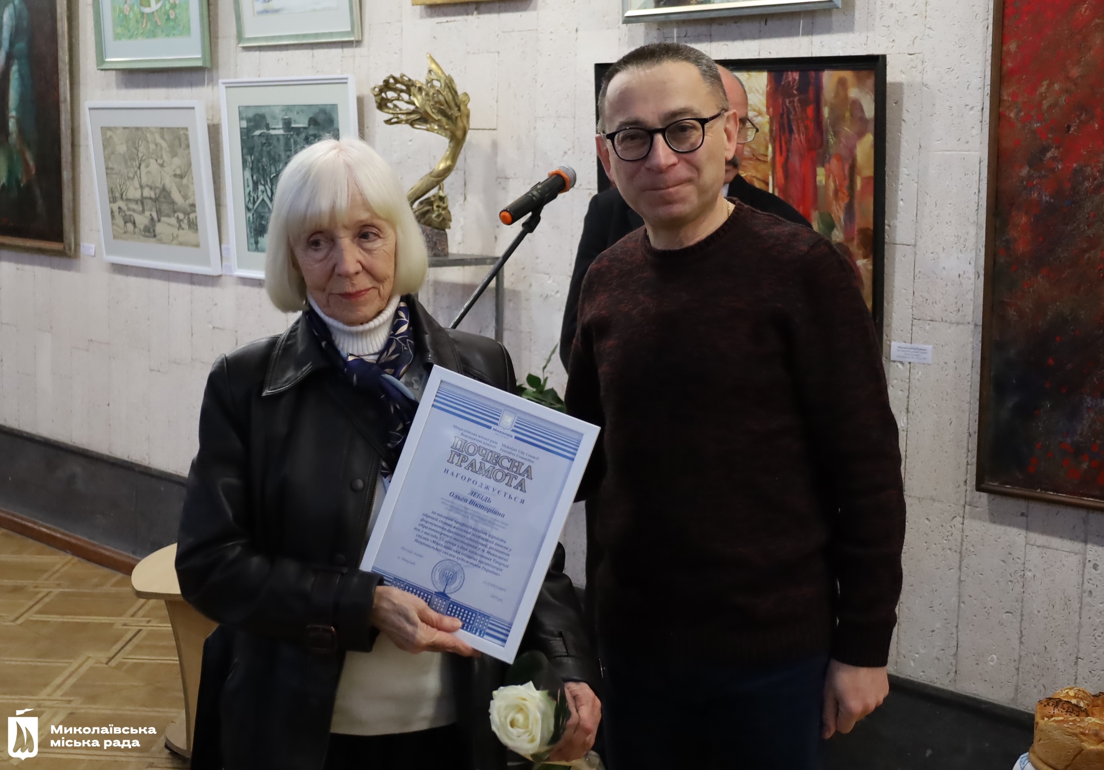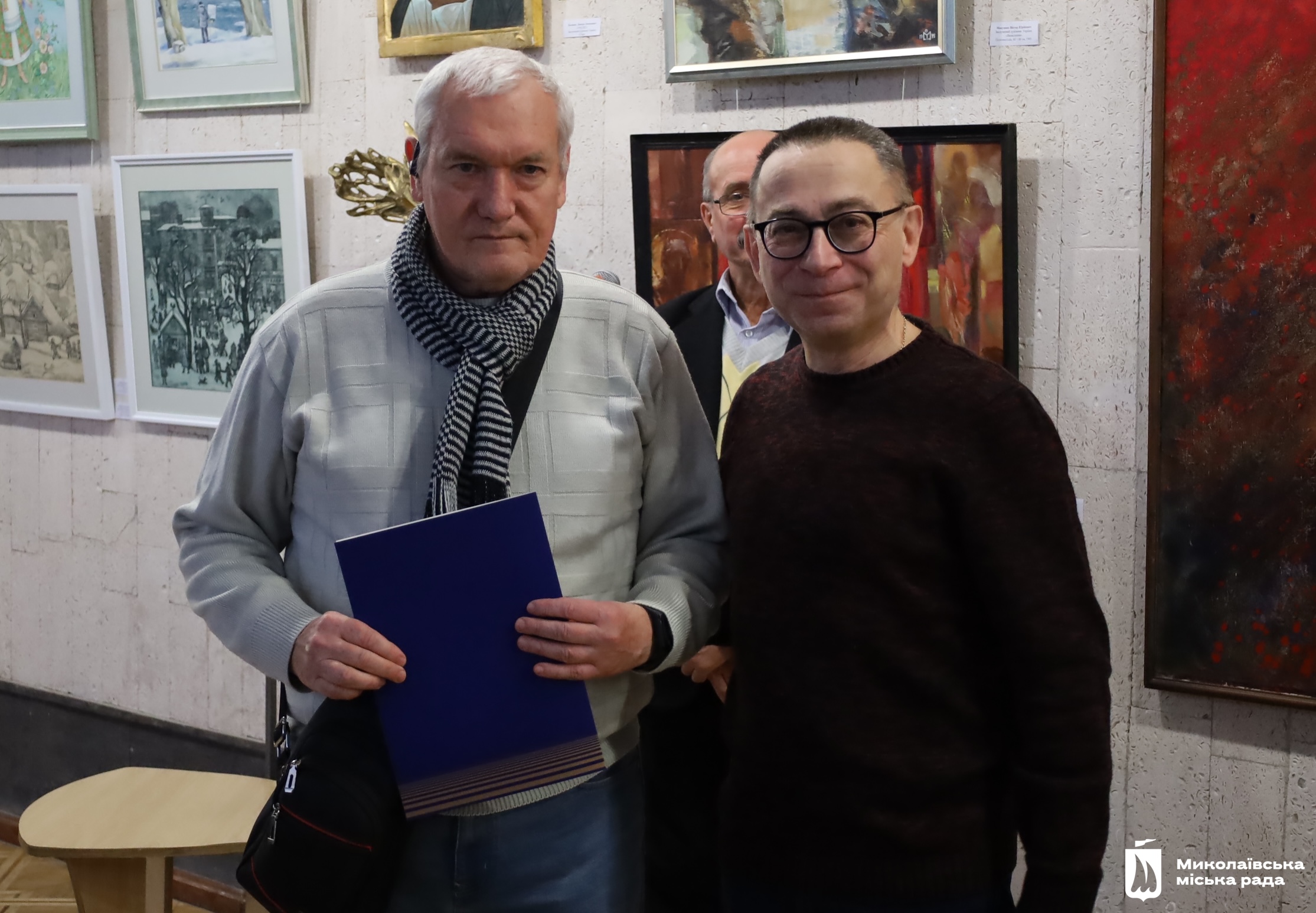 Він передав Миколаївській обласній організації Національної Спілки художників України почесну подяку міського голови за створення новітньої історії України, поповнення духовної скарбниці Миколаївщини та потужний внесок в образотворче мистецтво України і світу. Також грамоти та подячні листи отримали митці нашого міста та області.
