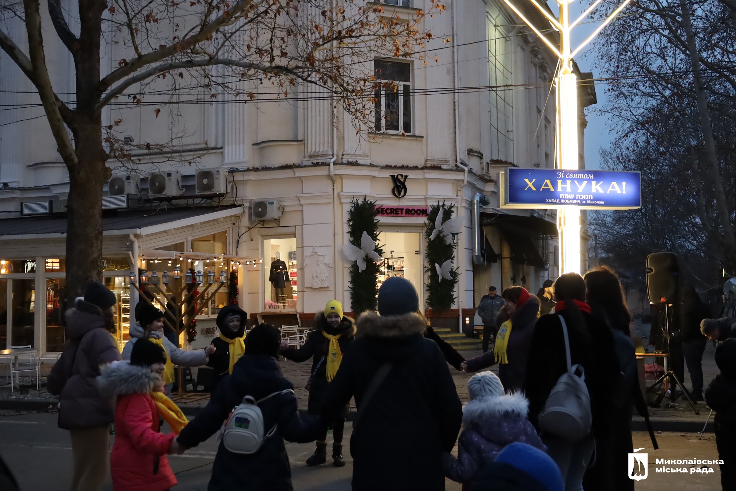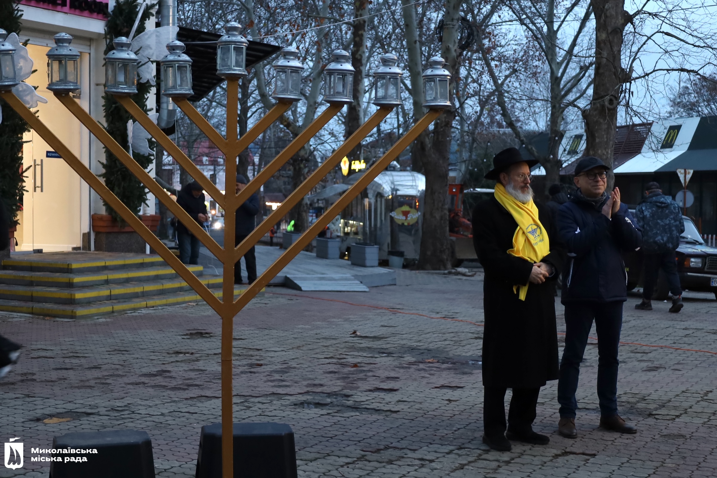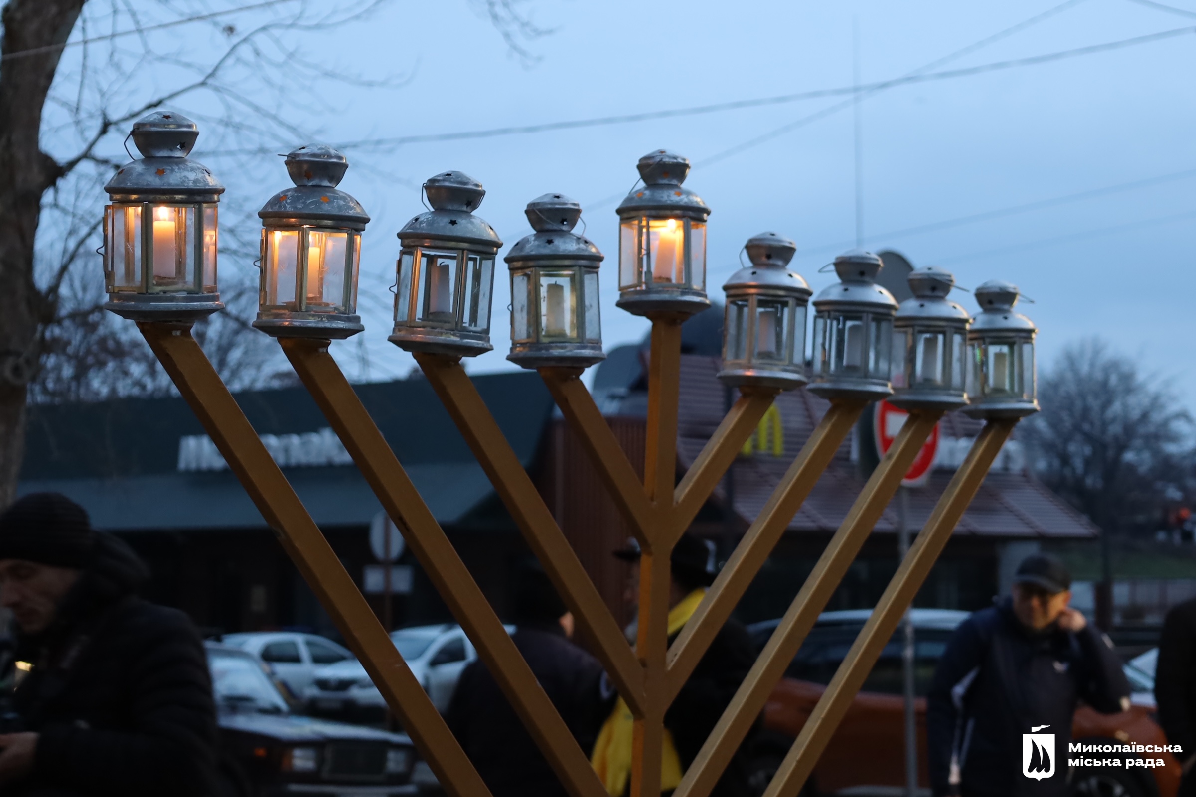 Вчора, 15 грудня, у Миколаєві відбулася урочиста церемонія запалювання першої свічки менори Хануки. Традиційно на центральній вулиці міста встановили ханукію, біля якої зібралися миколаївці, що сповідують юдаїзм.