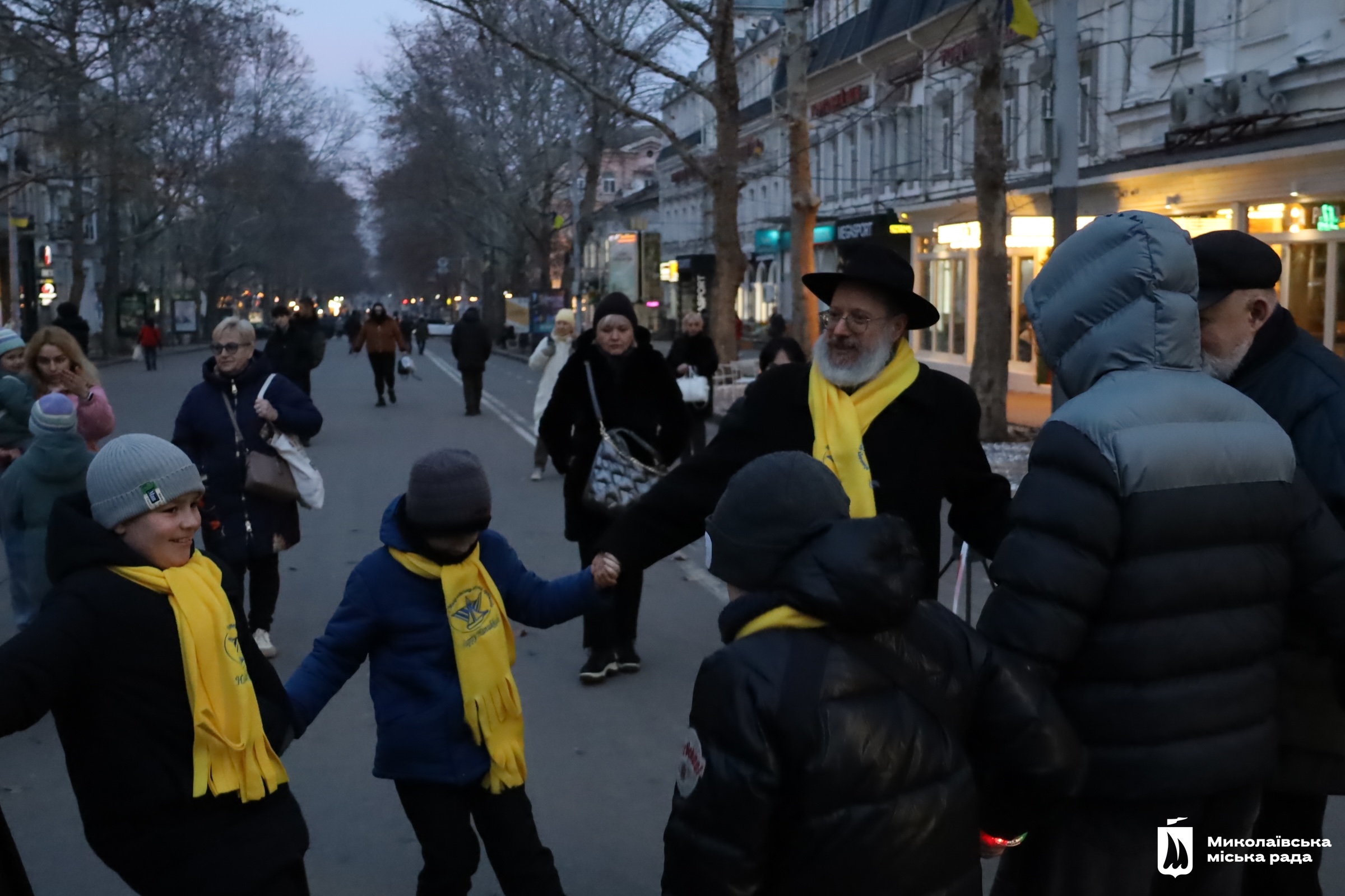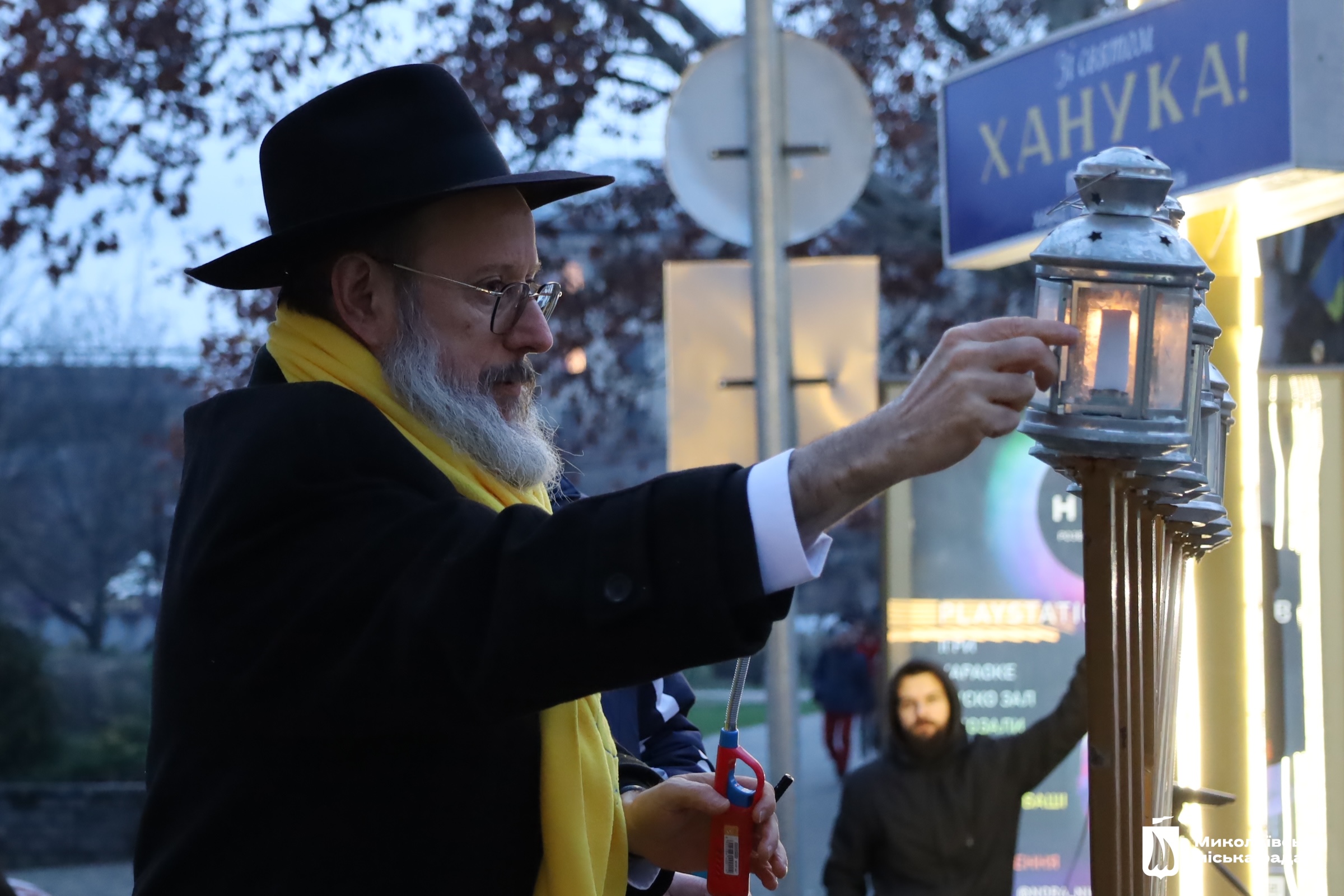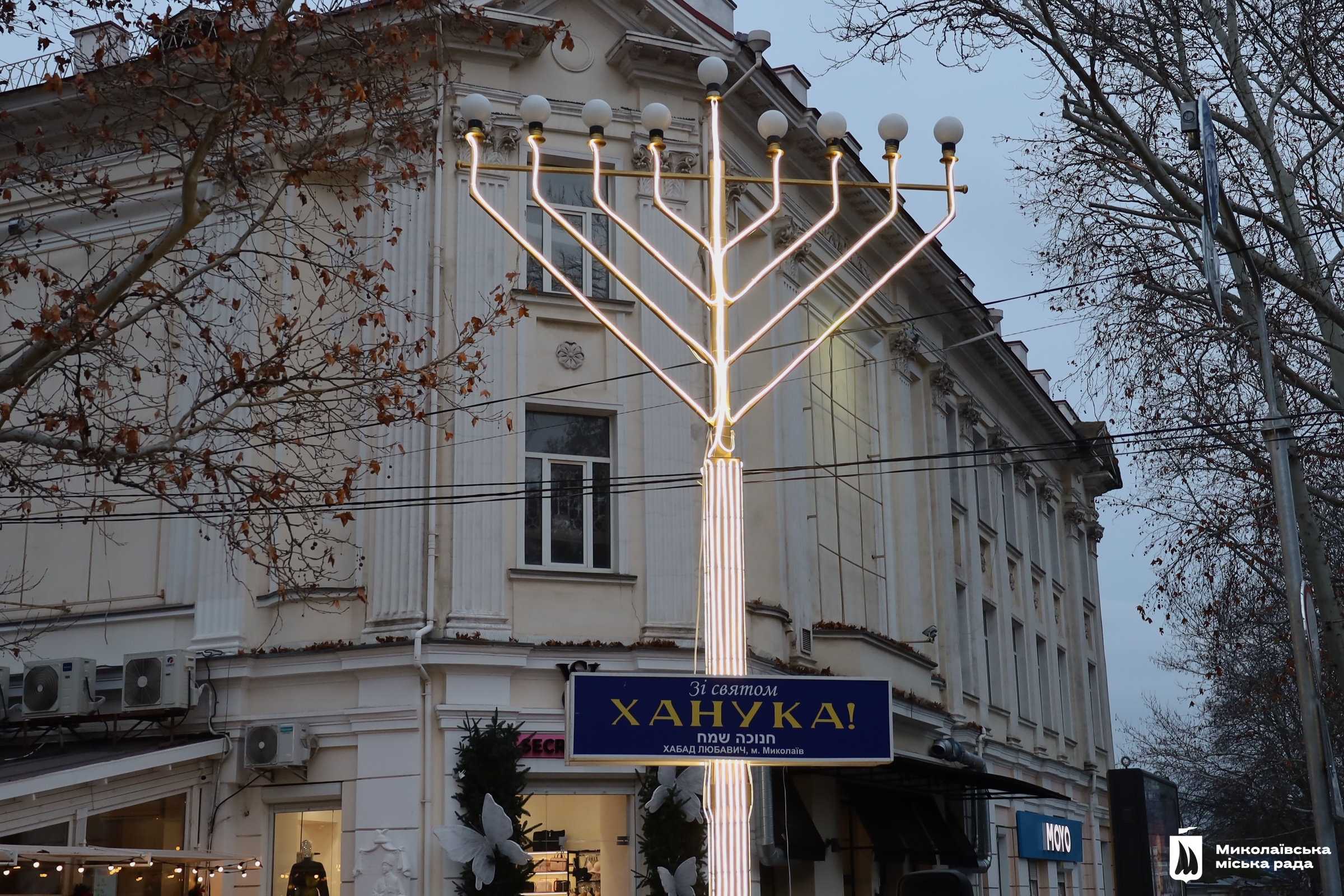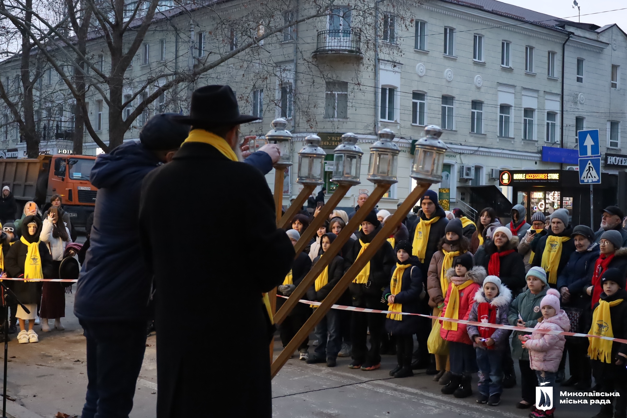 Вчора, 15 грудня, у Миколаєві відбулася урочиста церемонія запалювання першої свічки менори Хануки. Традиційно на центральній вулиці міста встановили ханукію, біля якої зібралися миколаївці, що сповідують юдаїзм.