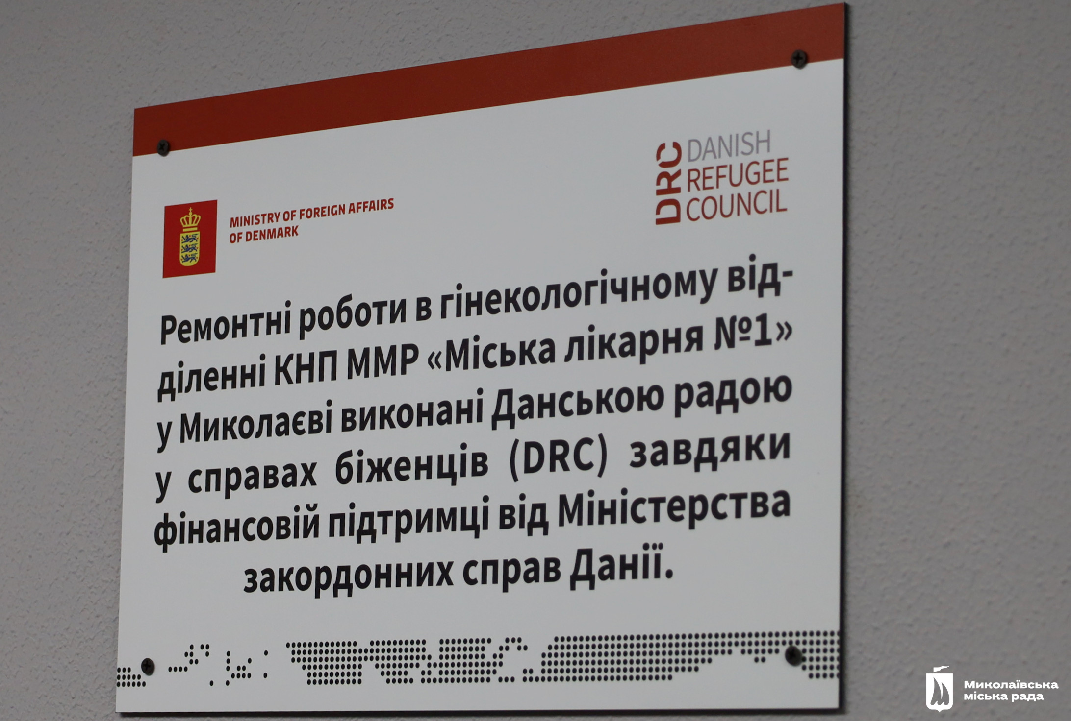 У міській лікарні №1 Миколаєва відкрили оновлене відділення гінекології. Це стало можливим завдяки фінансуванню Embassy of Denmark in Ukraine. Ремонтні роботи виконала Данська рада у справах біженців / DRC в межах проєкту гуманітарної допомоги.