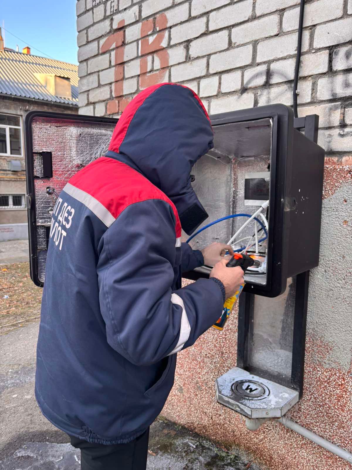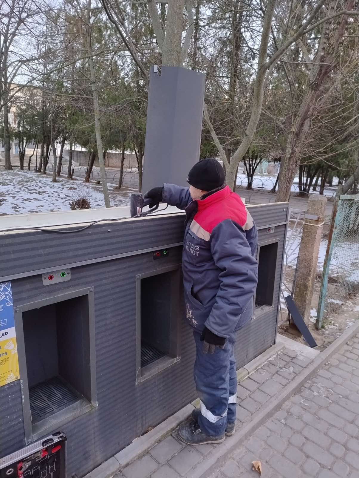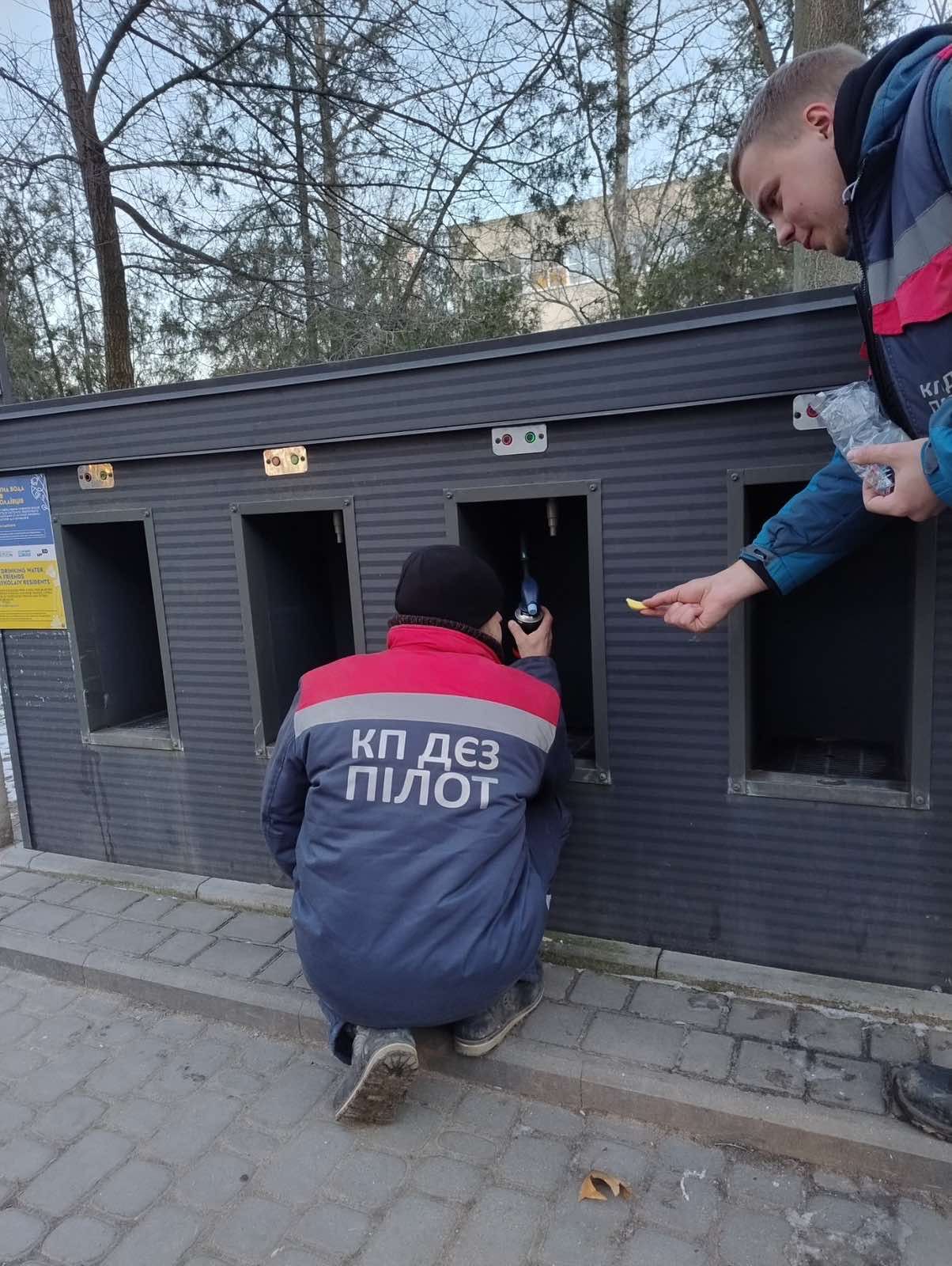 У Миколаєві працівники ОКП «Миколаївоблтеплоенерго» та КП ДЄЗ «Пілот» упродовж усього дня об’їжджають пункти видачі води та проводять їх прогрів і очищення від льоду.