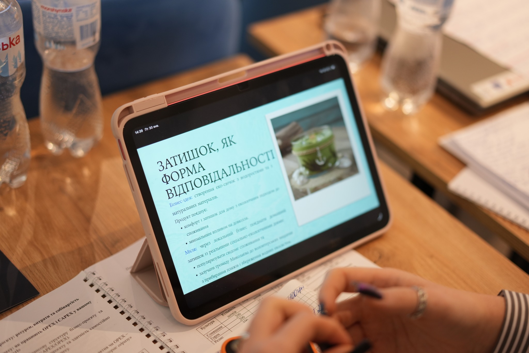 Під час фінальних презентацій учасники представили бізнес-ідеї, розроблені у філософії блакитної економіки. Серед них — антистресові продукти з користю для довкілля, екологічні свічки з використанням водоростей, крафтова косметика із солі миколаївських лиманів, а також пункти збору вторинної сировини з бонусною програмою для мешканців міста.