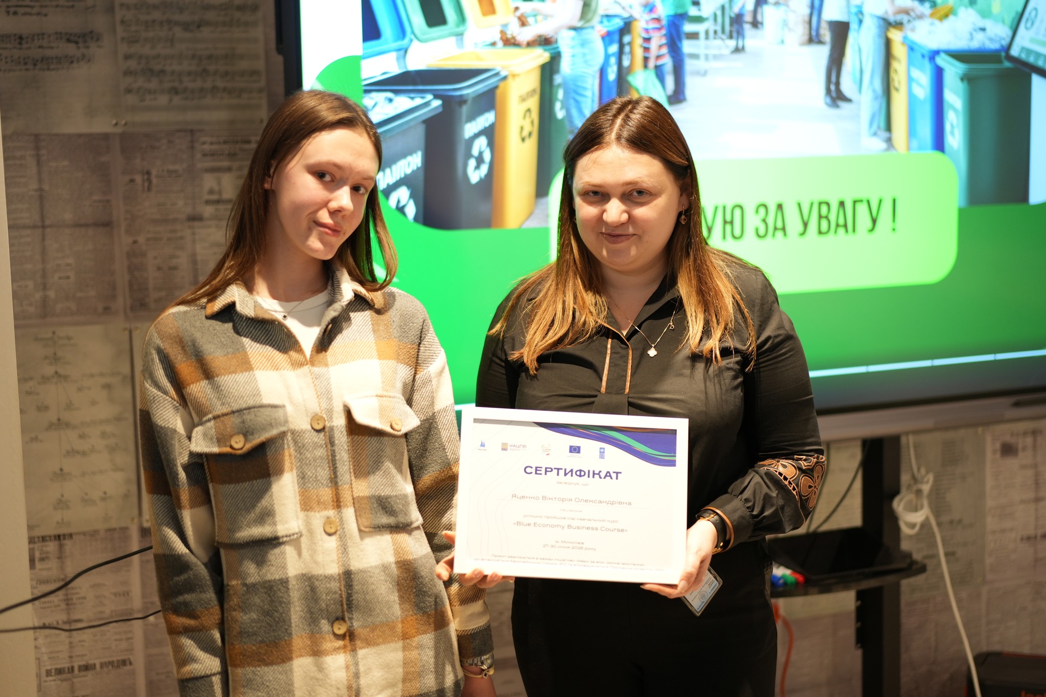 «Сьогодні ми вітаємо вас із завершенням навчання в межах «Бізнес-курсу з блакитної економіки». За цей час ви не лише познайомилися з філософією блакитної економіки, а й зробили важливий крок до створення власних бізнес-ідей, здатних впливати на розвиток Миколаєва. Нехай отримані знання та навички стануть для вас міцною основою для сміливих рішень і подальшої реалізації ваших ініціатив», — зазначила вона.