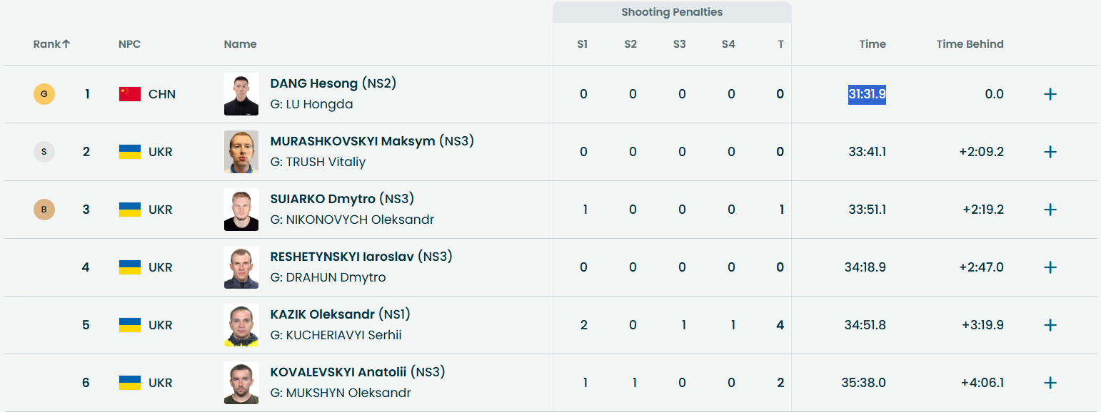 Мурашковський здобув срібло з результатом 33:41.1, а Суярко — бронзу з 33:51.1. Місця з четвертого по шосте теж посіли українці: Ярослав Решетинський, Олександр Казік і Анатолій Ковалевський.