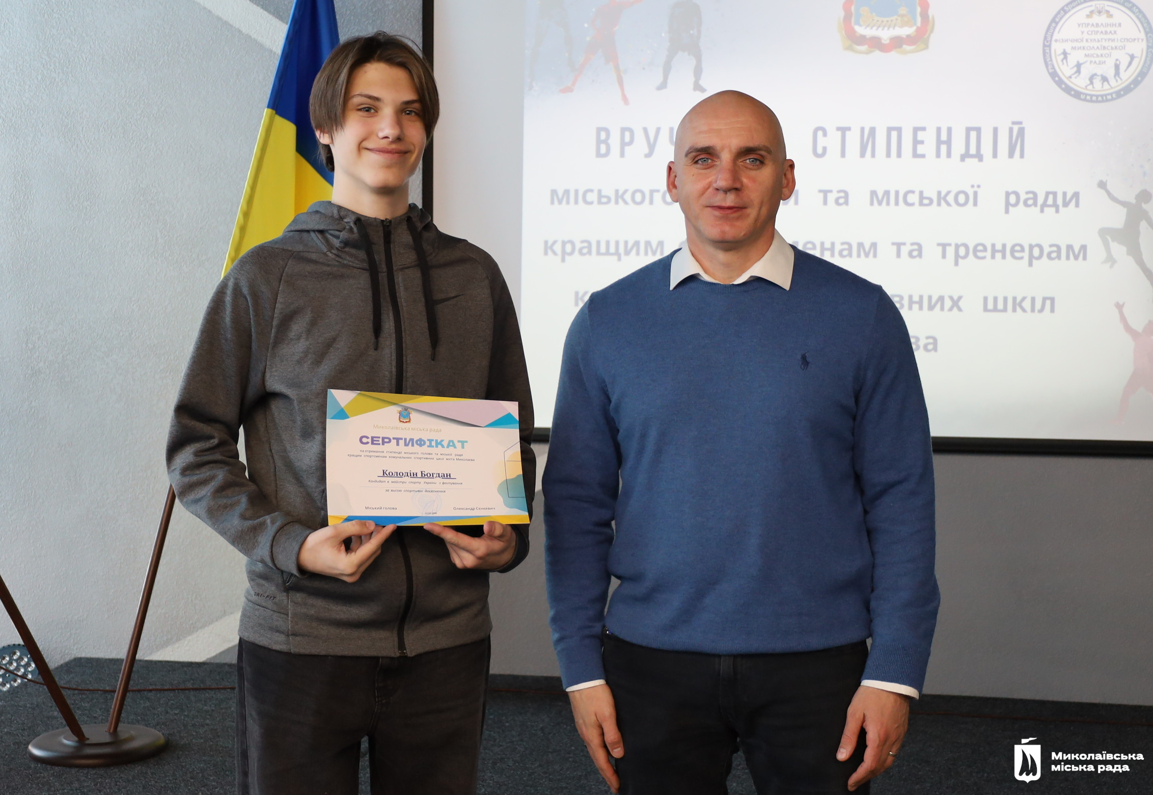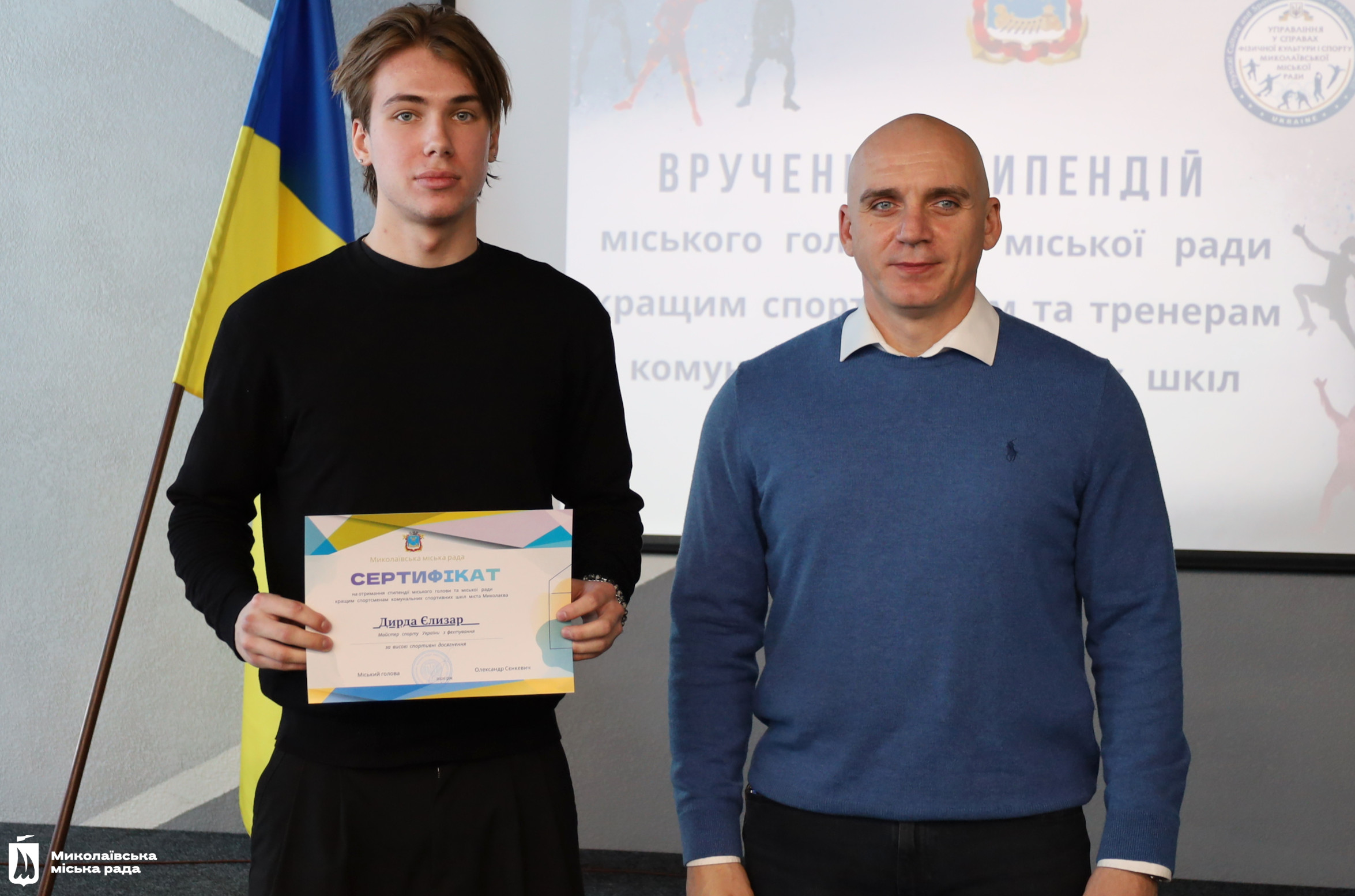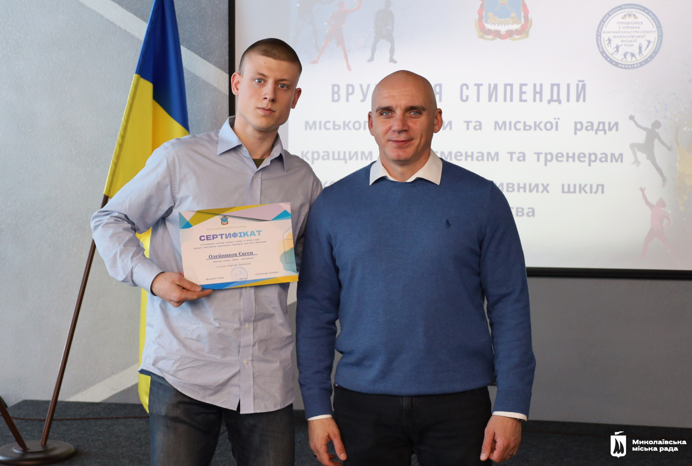 Сертифікати на отримання стипендії вручив Миколаївський міський голова Олександр Сєнкевич. Він подякував спортсменам за їх позитивний приклад для інших та успіхи, що прославляють місто і державу. А також тренерам, які виховують переможців.