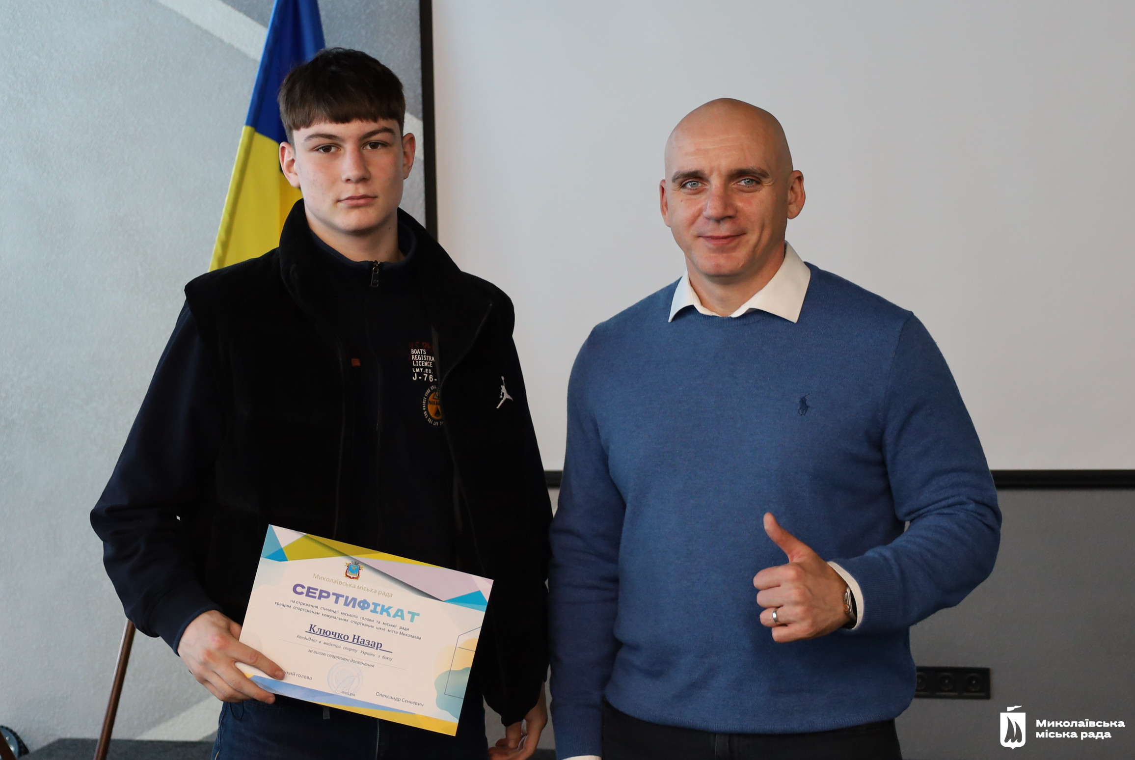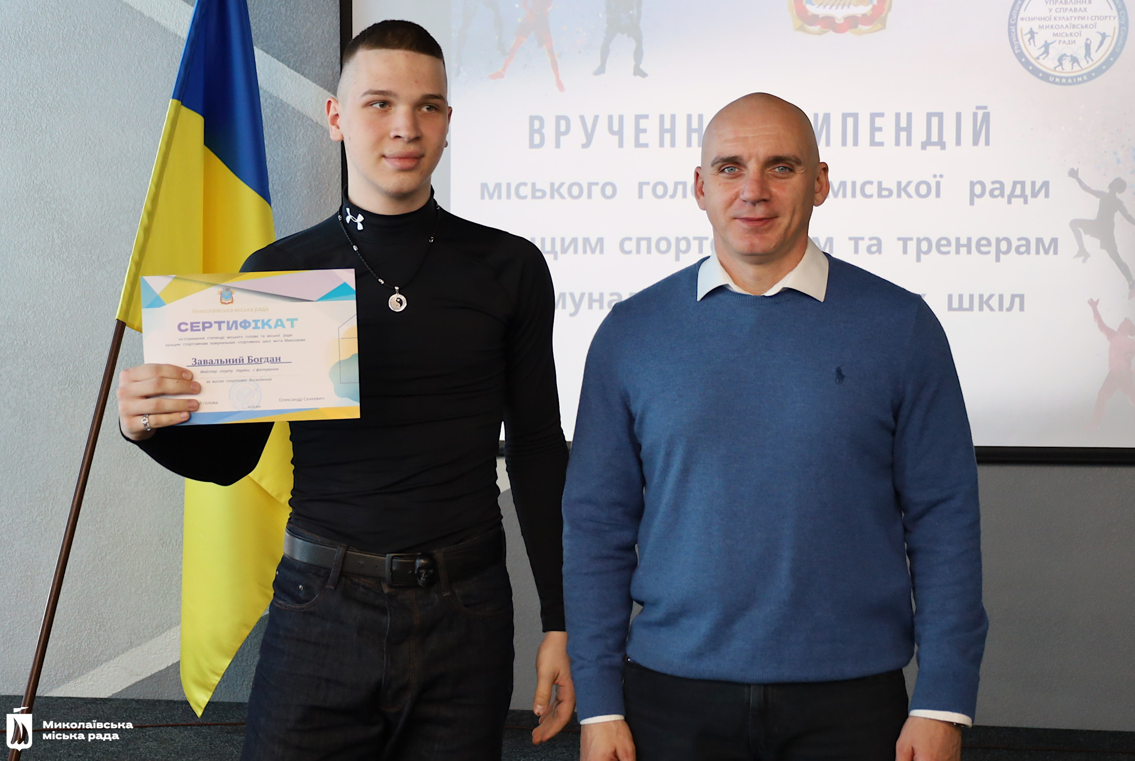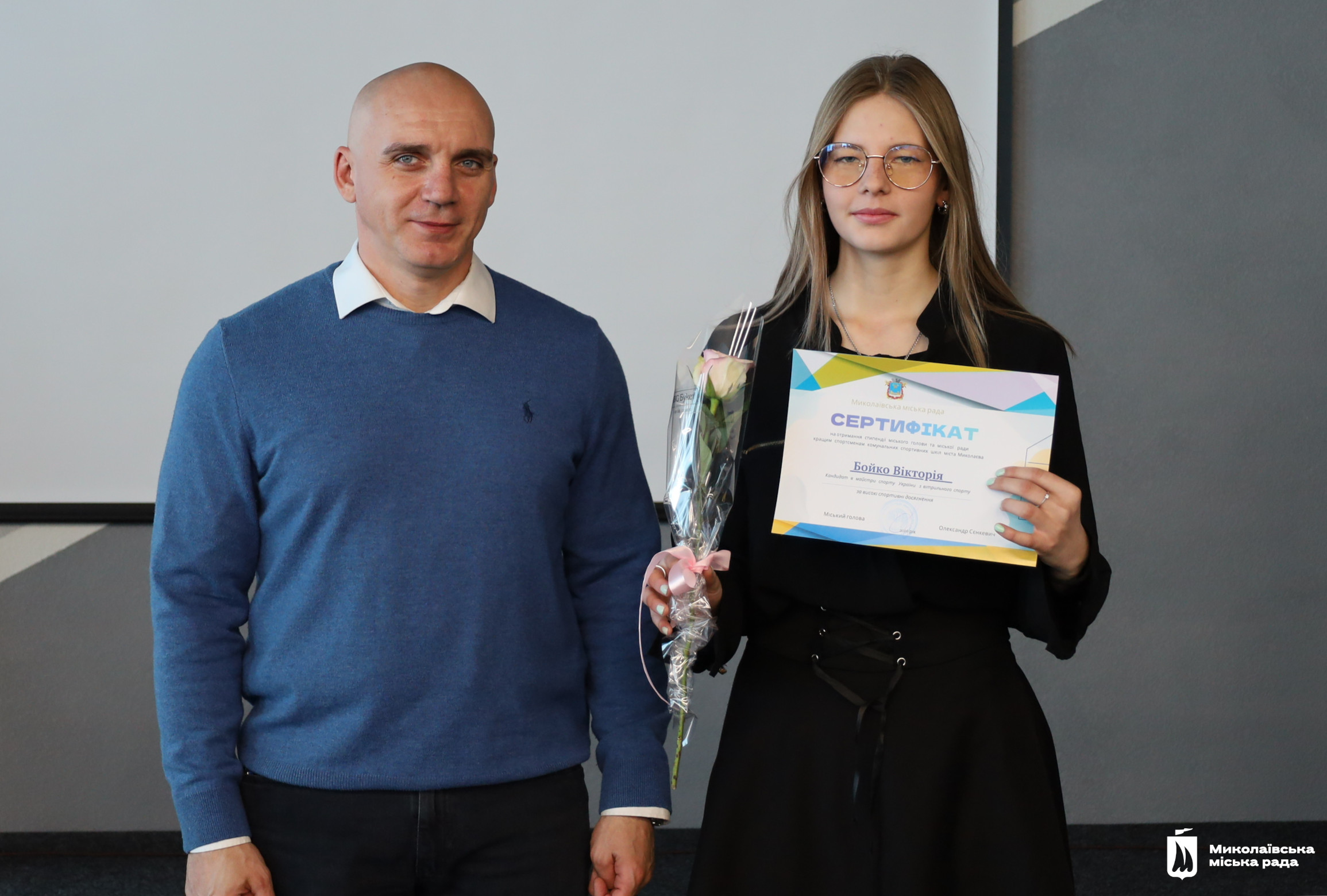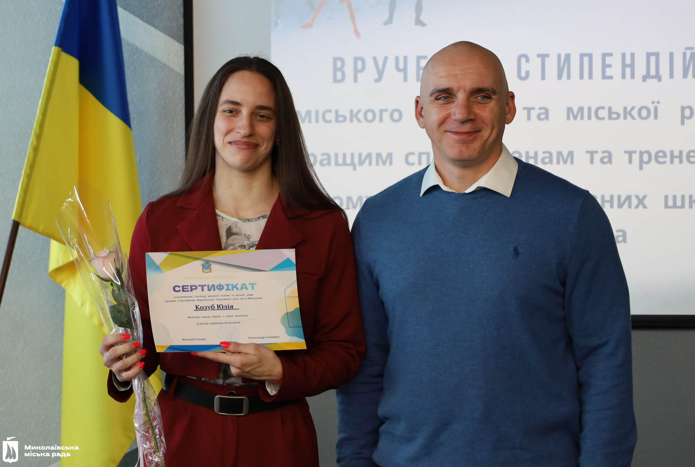 Сертифікати на отримання стипендії вручив Миколаївський міський голова Олександр Сєнкевич. Він подякував спортсменам за їх позитивний приклад для інших та успіхи, що прославляють місто і державу. А також тренерам, які виховують переможців.