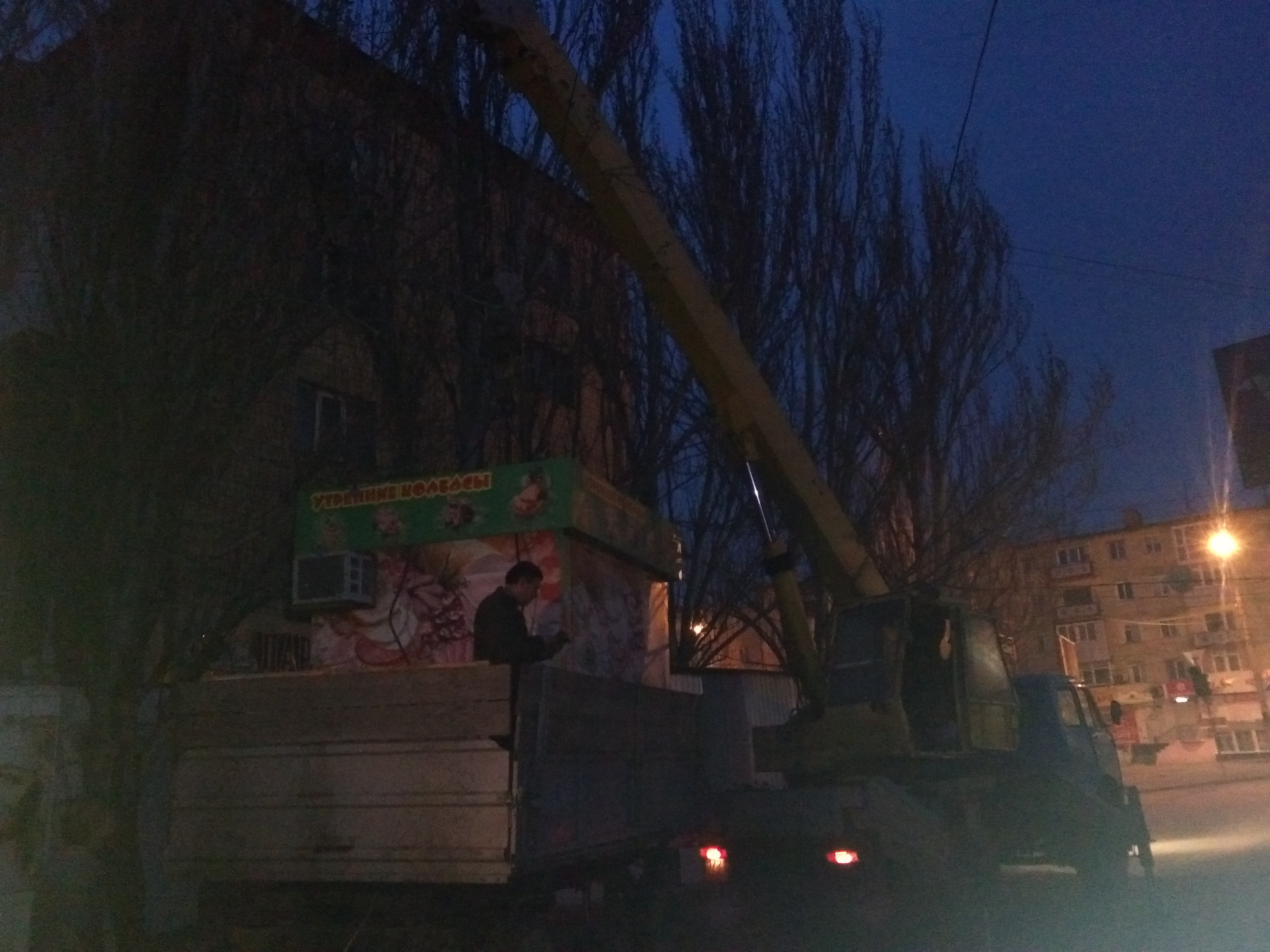 Демонтаж, проводится в рамках выполнения решения комиссии по вопросам упорядочения размещения объектов торговли и сферы услуг на территории Николаева.