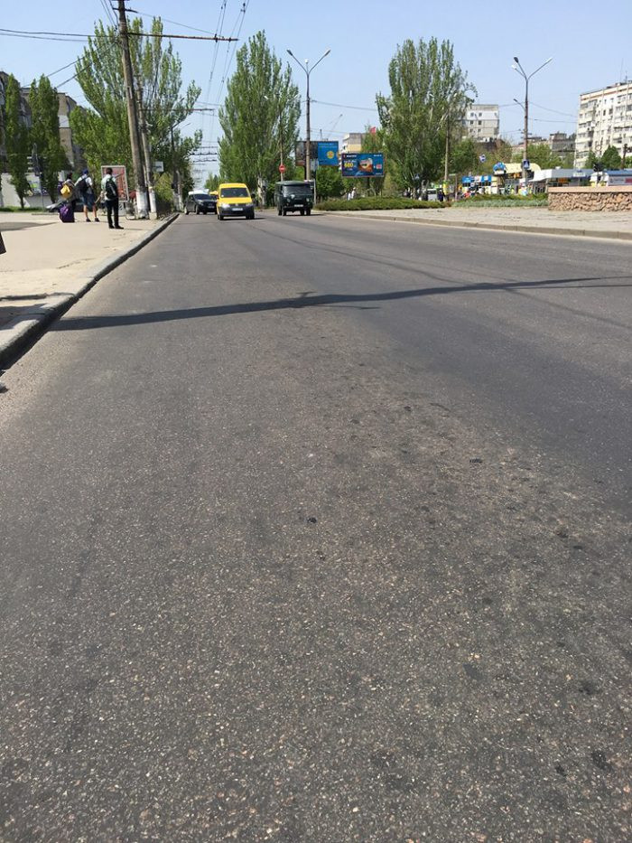 – Проспект Центральный, остановка Южный Буг, зона прошлогоднего текущего ремонта, выполнял «Дорлидер». Работы проводились днем в жару. Движение транспорта перекрывалось плохо. В следствии чего, асфальт не успел остыть и поплыл ещё в прошлом году. Сейчас отчетливо видна колейность в зоне торможениям троллейбуса и маршруток. Дорога на гарантии,– пишет активист.