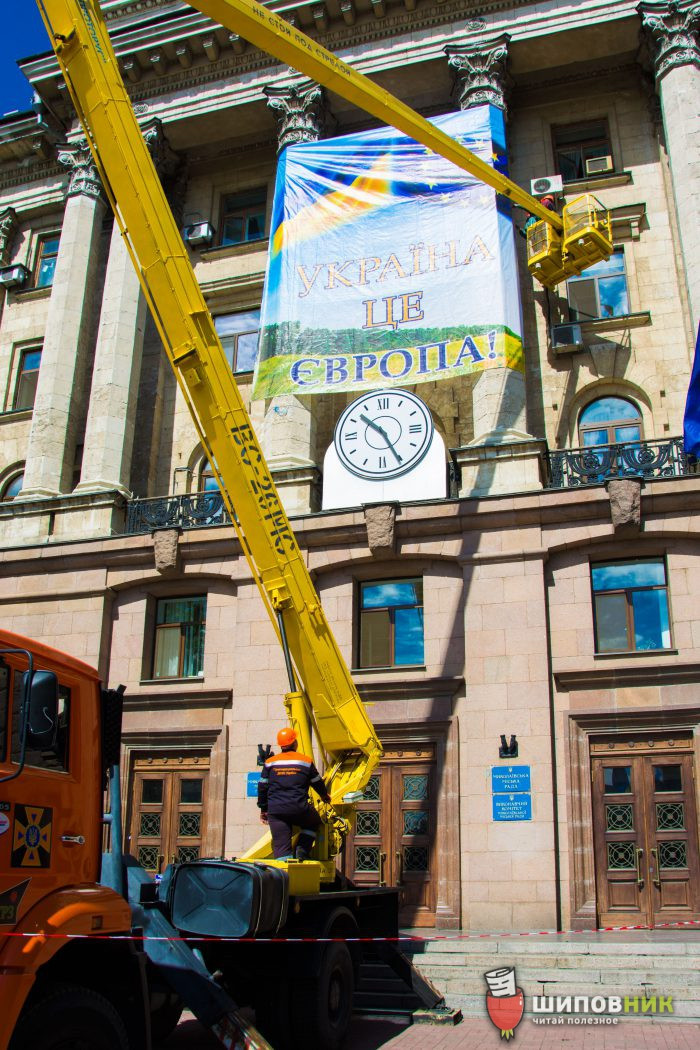 Сегодня, 10 мая, на фасаде здания Николаевского городского совета коммунальные службы вывесили баннер с надписью: «Украина – это Европа», передает корреспондент Шиповника.