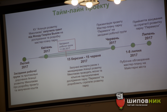 Представители КУ «Агентство развития Николаева» отметили, что уже в июне текущего года будет представлен проект мастер-плана парка «Победа» на заседании рабочей группы, немного позже пройдет публичное обсуждение, после чего планируется принять зонирование и стратегию развития парка.