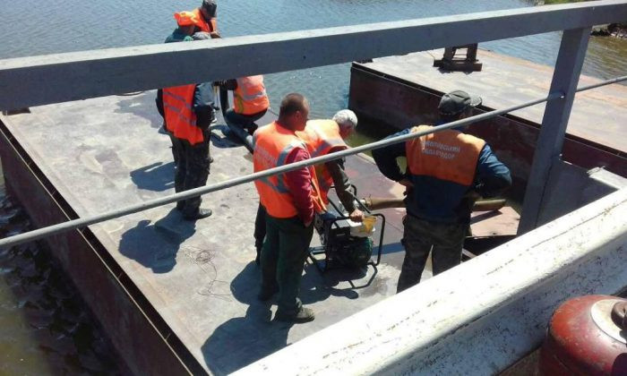 Дорожникам нужно будет очистить понтон от ила, ржавчины и водорослей, затем провести сварочные работы и покраску.