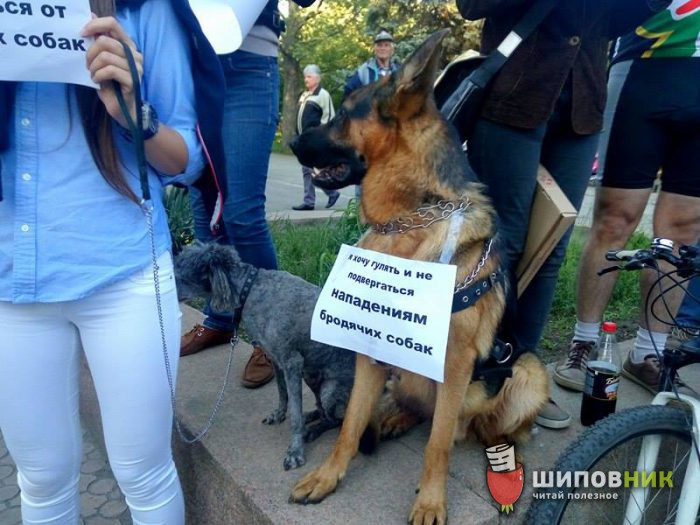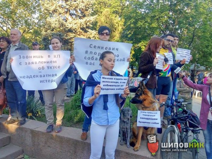 Так, жители города пришли на встречу с плакатами, чтобы таким образом привлечь внимание к проблеме, связанной с нападениями бродячих собак.