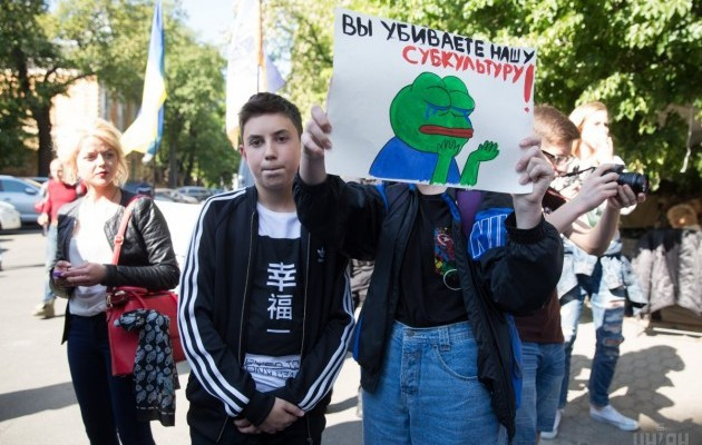 Они держат в руках плакаты: «Вы убиваете нашу субкультуру», «Без ВК нам жизнь горька». К митингующим подошли представители полиции, чтобы определить организаторов акции, с которыми потом может встретиться представитель АПУ для передачи требований. К охране общественного порядка задействовано около 30 сотрудников полиции и бойцов Нацгвардии.