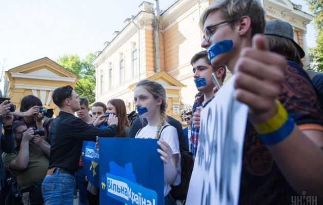 В Киеве несовершеннолетние пикетируют Администрацию президента Украины с требованием восстановить доступ к российским социальным сетям, пишет Униан.
