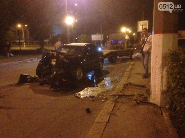 В ночь на 6 июля в Николаеве возле спортивной школы «Надежда» автомобиль «BMW» врезался в столб.