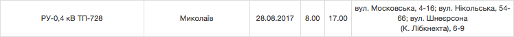 Завтра, 28 августа, несколько улиц Николаева будут отключены от электроснабжения в связи с проведением ремонтных работ.