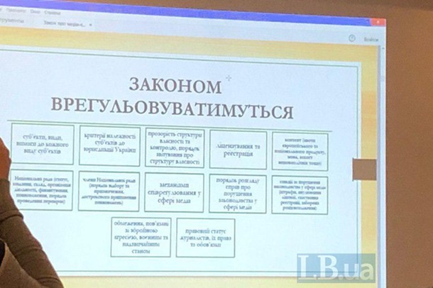 Законопроект также предлагает объединить действующие законы о медиа, ограничить монополию, запретить россиянам владеть украинскими СМИ.