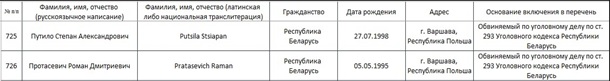 Ранее Следственный комитет возбудил в отношении этих граждан уголовные дела. Путило и Протасевич обвиняются в организации массовых беспорядков, а также в действиях, направленных на «возбуждение социальной вражды» в отношении представителей власти и правоохранителей.