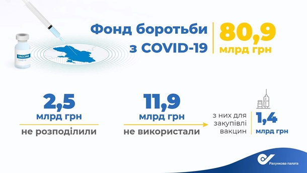 – 11,9 миллиардов гривен не использовали из Фонда борьбы с COVID-19 в 2020 году, в том числе 1,4 миллиарда гривен – для закупки вакцин против коронавируса, а почти полмиллиарда – на доплаты медикам. При этом 25,7 миллиарда гривен или треть всех средств Фонда направили на дороги, – написал он в соцсети Facebook.
