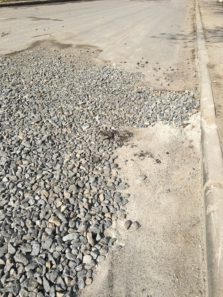 Он добавил, что на днях это участок немного присыпали гравием, и скорее всего, планируют закрыть асфальтом в виде произвольного пятна: